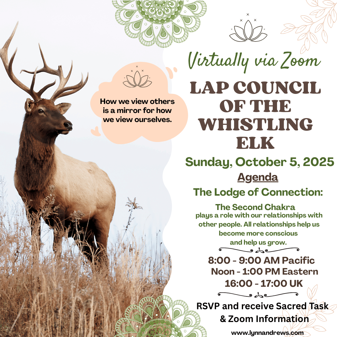 LAP Council of the Whistling Elk meets virtually on Sunday, October 5, 2025, 8:00 AM Pacific/9:00 AM Mountain/11:00 AM Eastern/16:00 GMT.